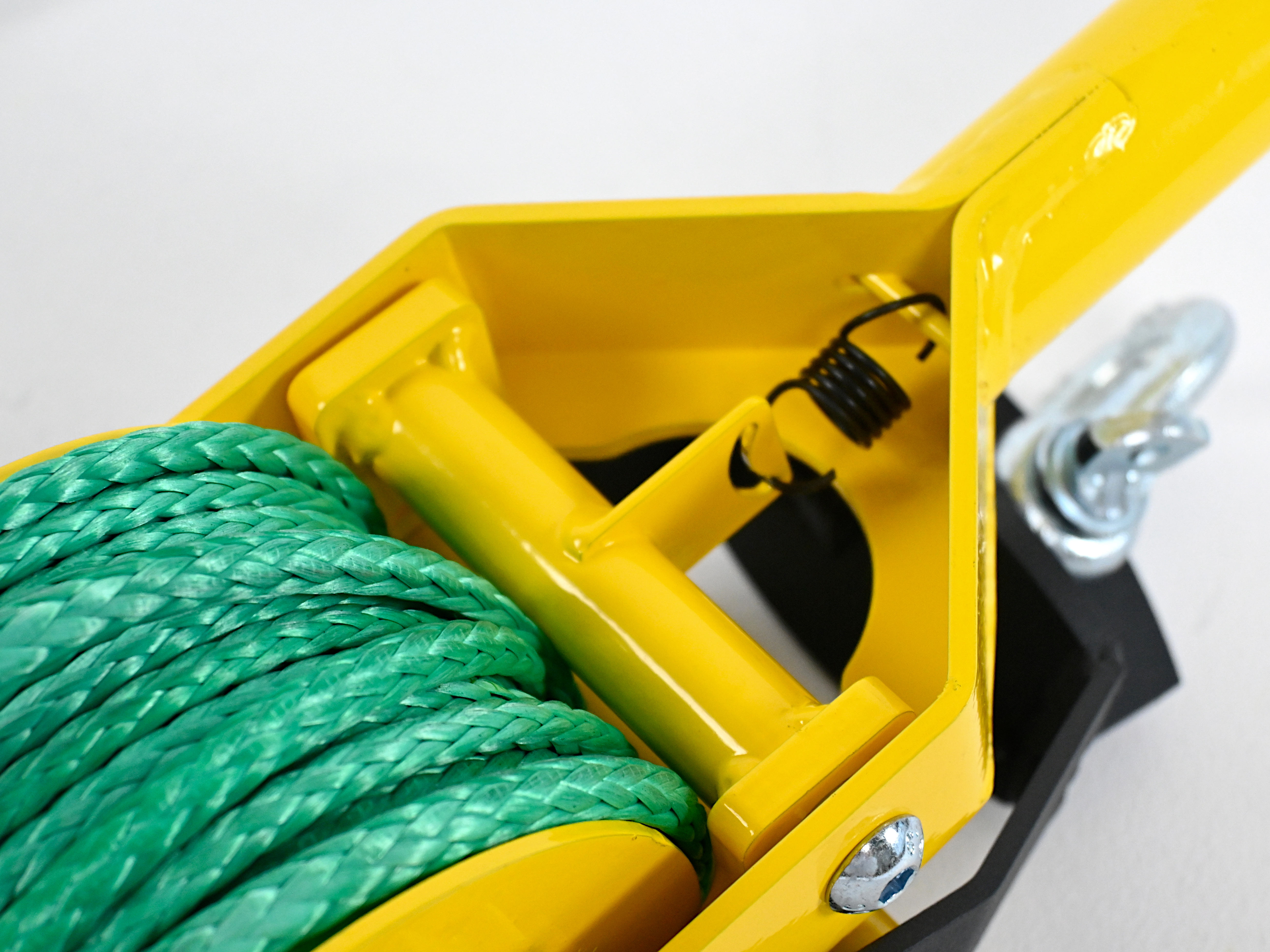Отличительная особенность модели — кевларовый трос толщиной 6 мм и длиной 19,5 м. Удвоенная длина по сравнению с типовыми решениями позволяет работать на большем расстоянии от точки крепления, что удобно при буксировке, натяжении ограждений или перемещении грузов в стеснённых условиях. Трос не подвержен коррозии, сохраняет эластичность при низких температурах и не повреждает поверхности.